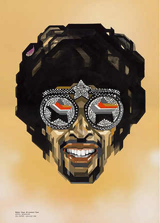 Believing that the in the future humans will become increasingly artificial in order to sustain life, Shibuya's work conveys his vision of this merger as a harmonic and sustainable one. Realising the profound effect music has on the human expression, Shibuya tries to capture the emotion people feel when listening to different sounds and beats. His portraits, which feature many black cultural and musical icons, are a testament to this. Gazing out steadily from a sea of colour they exude a powerful presence. Shibuya's unforgettable works offer a bright, inspiring and truly unique vision of the world.